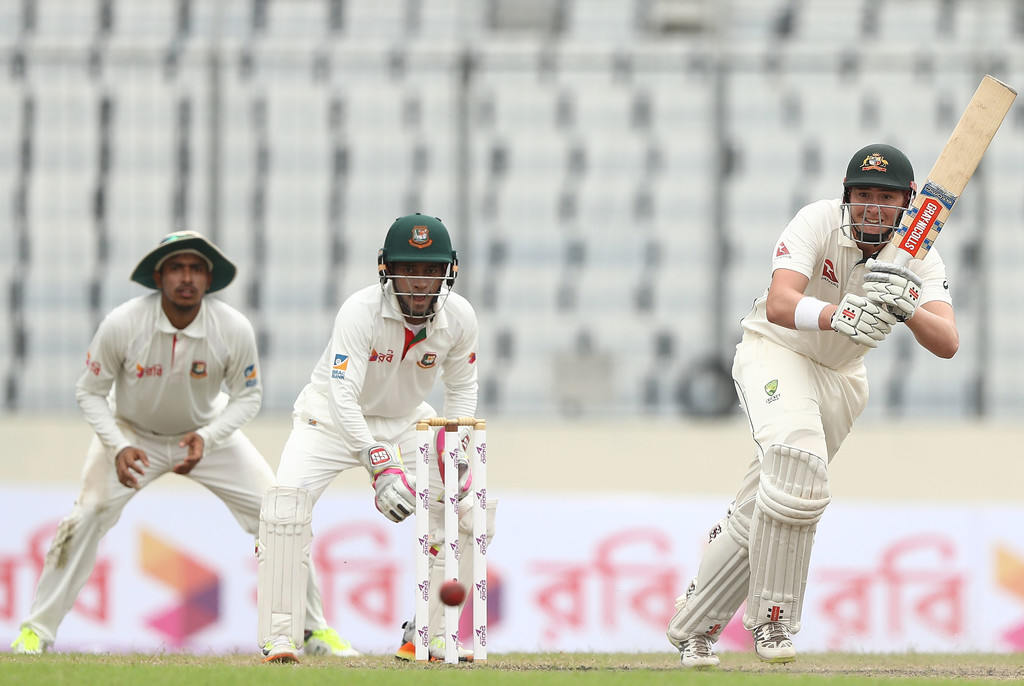 Matt Renshaw and Peter Handscomb made up for the loss of Smith with a 69-run partnership before Handscomb was given out lbw off the bowling of Taijul Islam for 33.