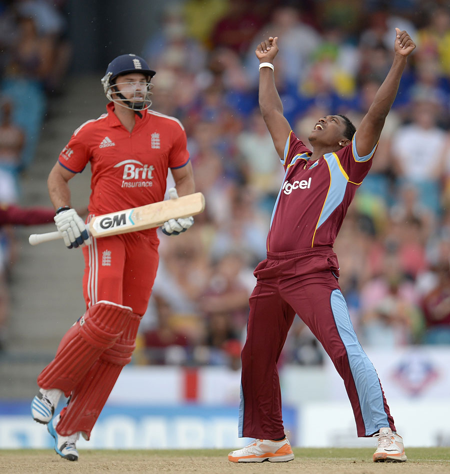 West Indies left-arm pace bowler Krishmar Santokie ripped through England’s batting line-up with four wickets and captain Darren Sammy hammered 30 runs off just nine balls to lead their side to a five-wicket win over England in the second Twenty20 International in Barbados.