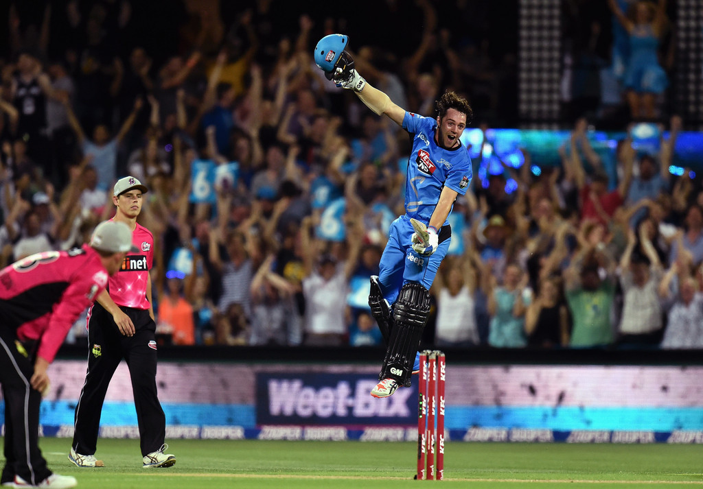 Sydney Sixers wicketkeeper-batsman Brad Haddin scored a crucial 31 not out, nine runs of which came in the last three balls of the match, to lead his side to a tense six-wicket win over the Melbourne Renegades.